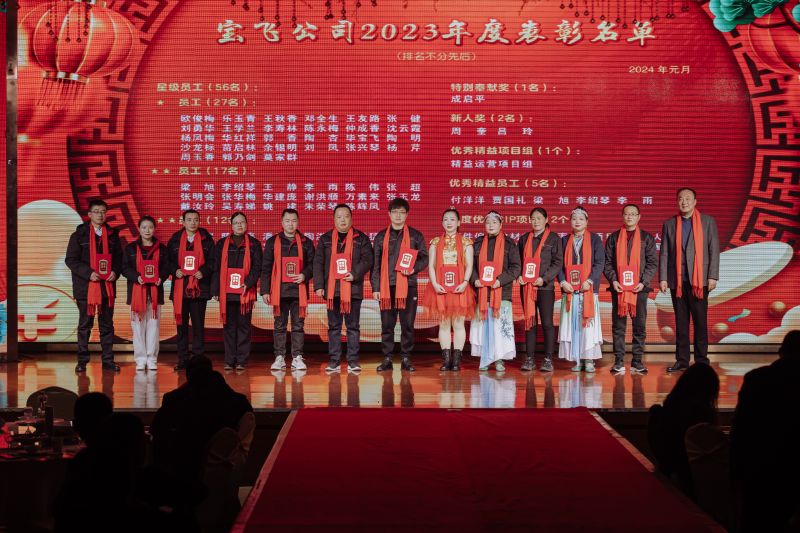 乘風(fēng)破浪,砥礪前行!2月3日,揚(yáng)州寶飛公司總結(jié)表彰暨2024年員工聯(lián)誼會(huì)圓滿舉行。董事長趙平先生致辭,并對(duì)優(yōu)秀員工進(jìn)行表彰。聯(lián)誼會(huì)不僅為大家準(zhǔn)備了精彩的節(jié)目表演,還有游戲抽獎(jiǎng)活動(dòng)。室外大雪紛飛,廳內(nèi)喜氣洋洋,節(jié)目精彩紛呈,觀眾熱情高漲!大家一起度過了一個(gè)愉快而又美好的夜晚!