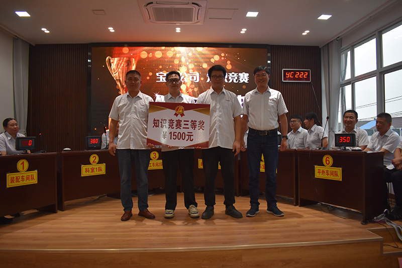 【概要描述】經過三個月的籌備,公司于2024年10月13日,舉辦企業文化(軸承專業)知識競賽。共有各部門組織的六個代表隊參賽,經過緊張激烈地角逐,最終決出一等獎、二等獎、三等獎各一隊。他們分別是:磨工車間隊(張玉龍、倪文芳、夏飛)獲得一等獎,科室2隊(華建龐、高翔、田甜)獲得二等獎,科室1隊(顧永亮、朱健、陳海綿)獲得三等獎。